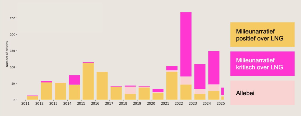 Wij onderzochten de verslaggeving rondom LNG in Nederland sinds 1991. Belangrijk, want de meeste mensen leren over klimaatoplossingen via het nieuws, niet uit wetenschappelijke rapporten. Wat media oppikken, en hoe, bepaalt mede de publieke en politieke agenda.