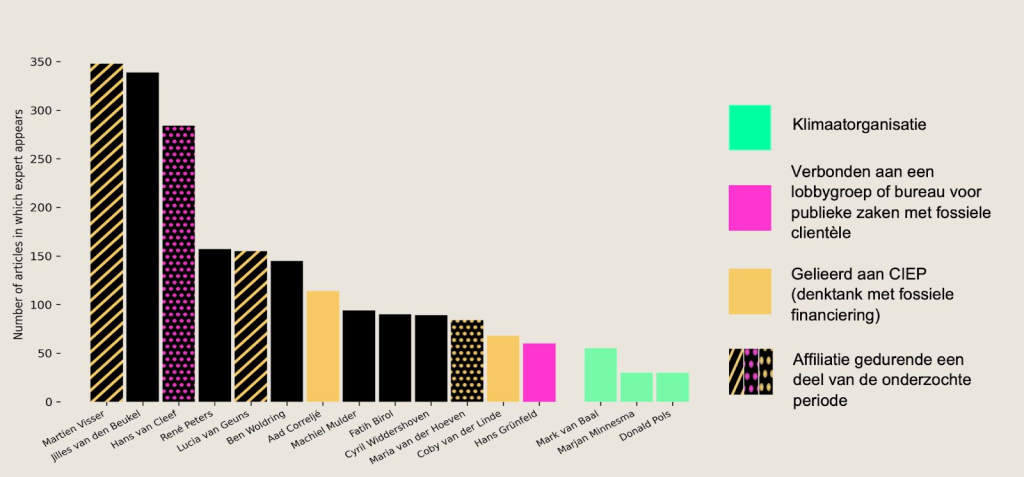 ➡️ De drie meest geciteerde experts kwamen in meer dan 250 nieuwsartikelen voor: veel vaker dan experts van milieuorganisaties;